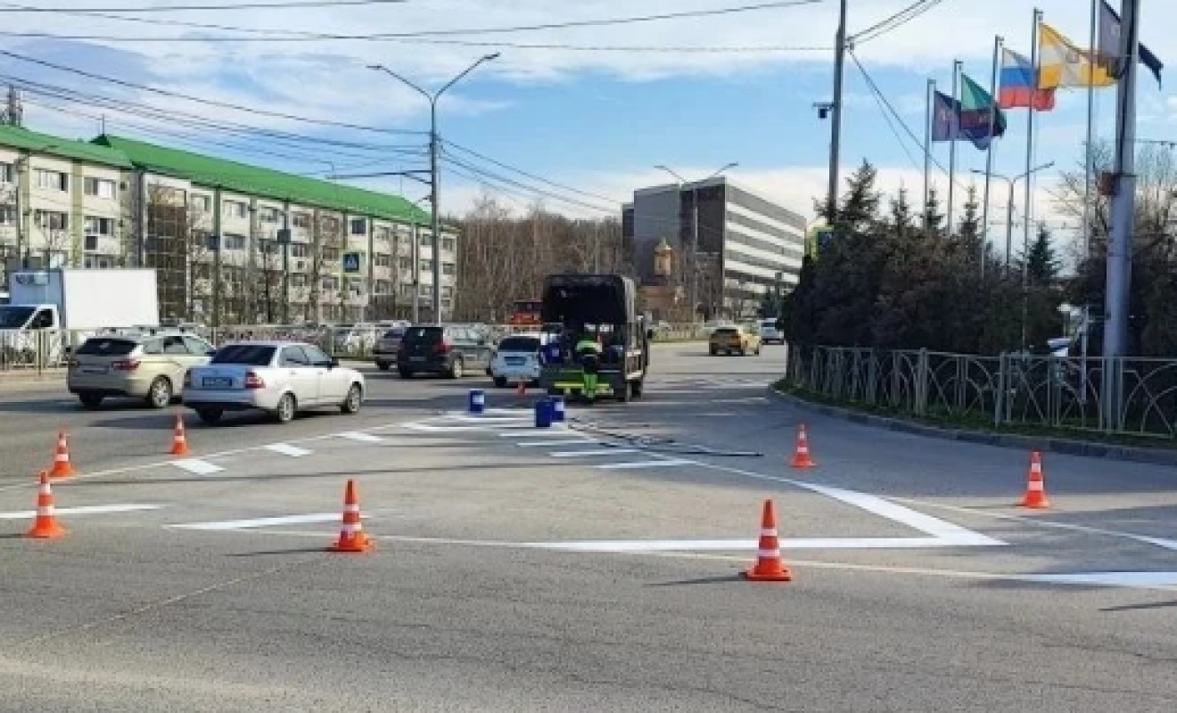 По словам мэра Ставрополя Ивана Ульянченко, для снижения заторов сейчас специалисты перекрывают несколько полос, оставляя проезд для транспорта. Краска сохнет полчаса, а для светоотражения в финальный слой добавляют отражающие свет шарики — такого материала закуплено 28 тонн.