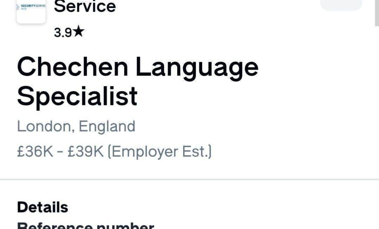 Британская спецслужба MI5 разместила вакансию для специалиста по чеченскому языку. Для чего контрразведке понадобился такой знаток, не уточняется.