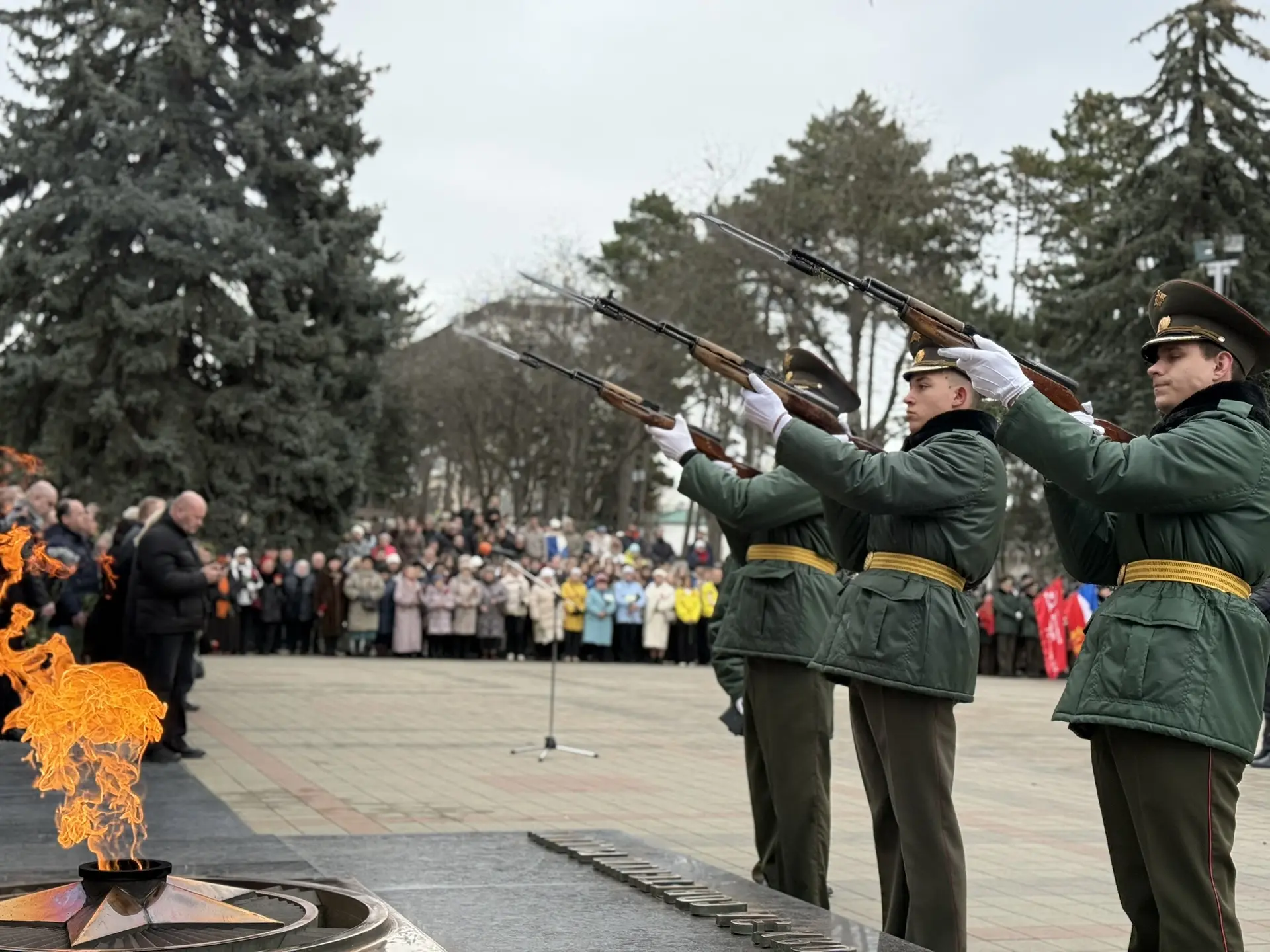 Воскресным утром у Вечного Огня собрались горожане всех поколений, чтобы отдать дань памяти подвигу советского народа.