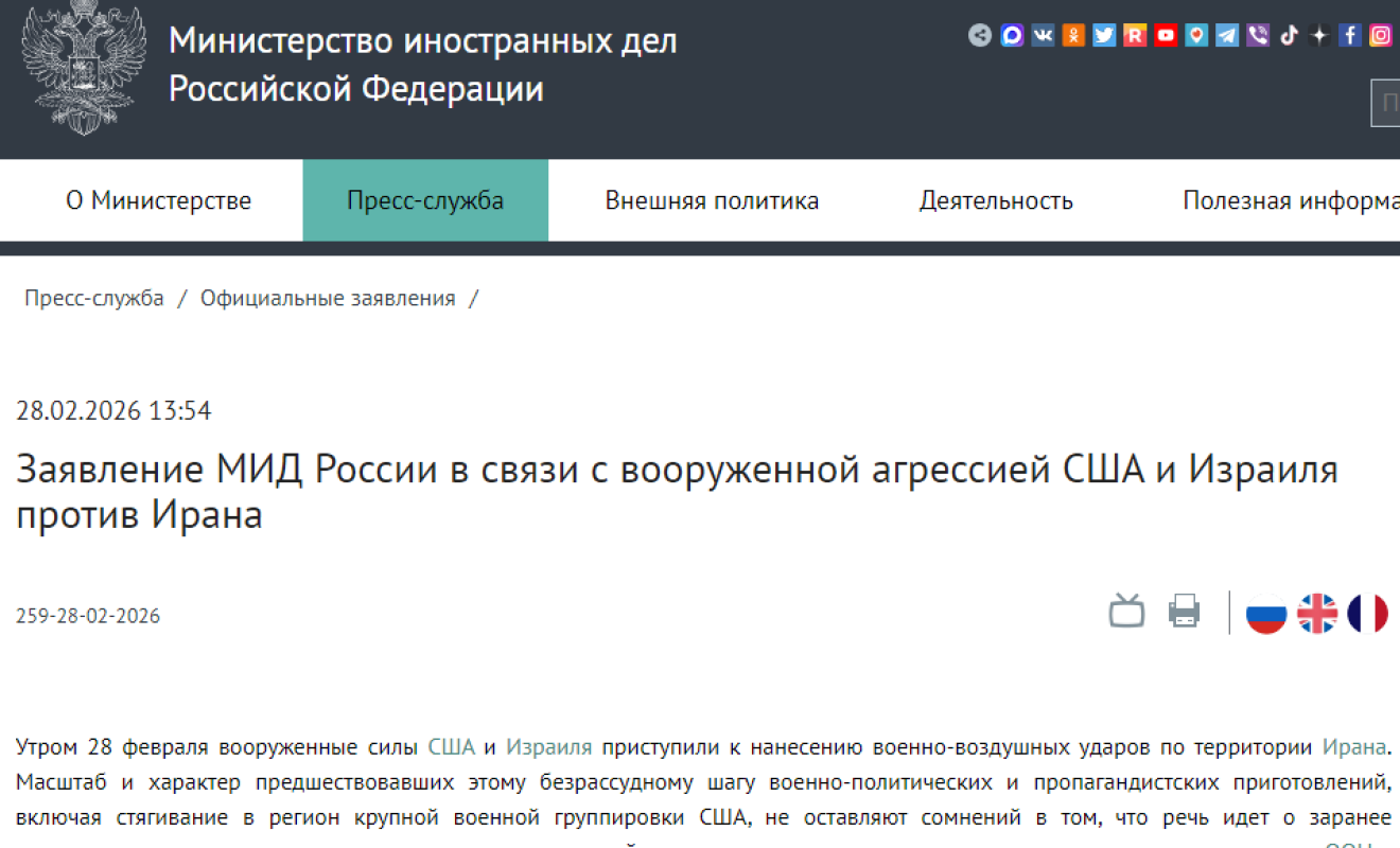Дипломатическое ведомство рекомендовало россиянам проявление повышенной бдительности, отслеживать официальные сообщения властей и избегать нахождения вблизи военных и правительственных объектов. Им также нужно сохранять спокойствие и не поддаваться на возможные провокации по распространению паники через СМИ и соцсети.