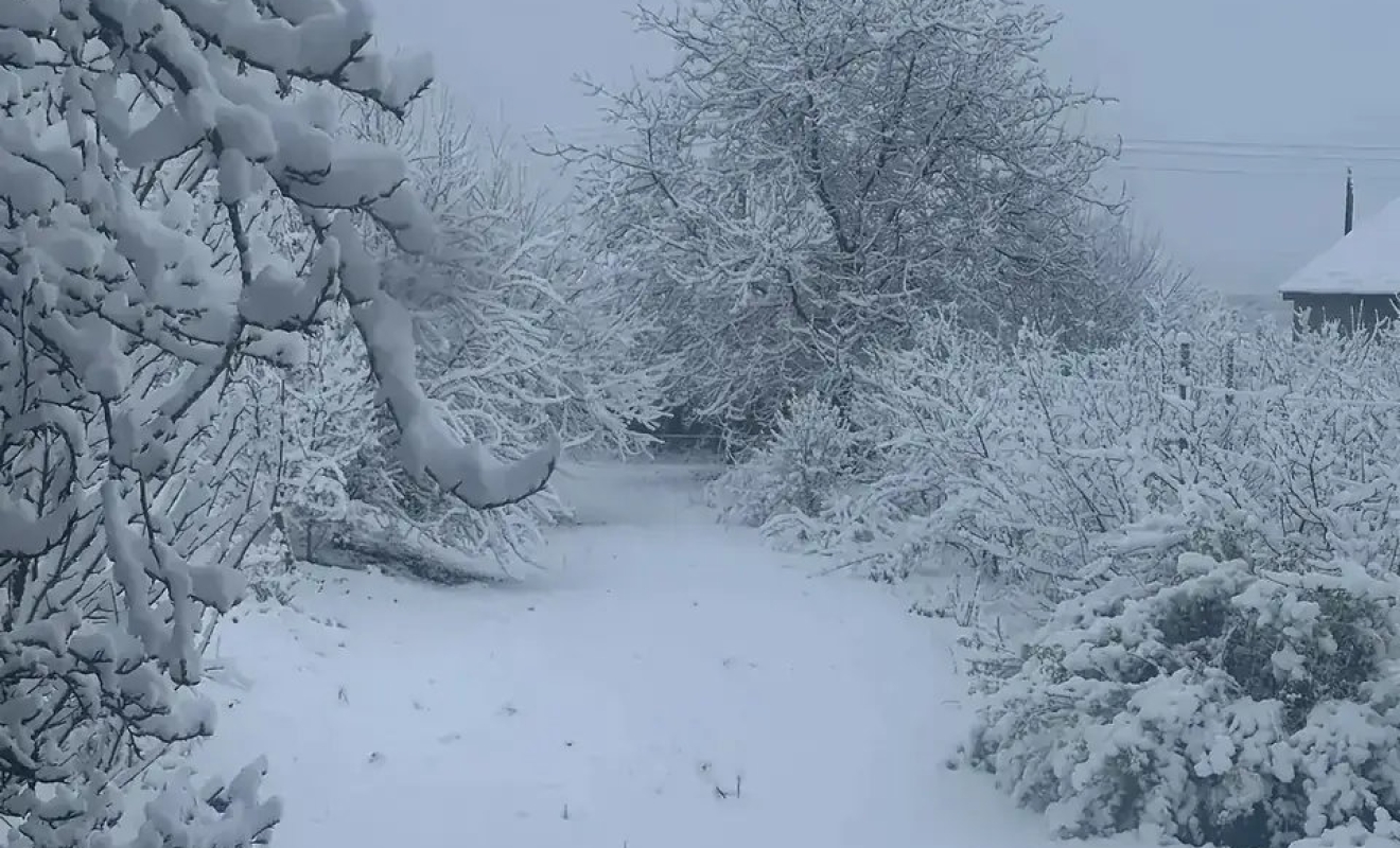 Свой пост он проиллюстрировал фото из картофельной станицы края - станицы Боргустанской, где снег шел всю ночь.