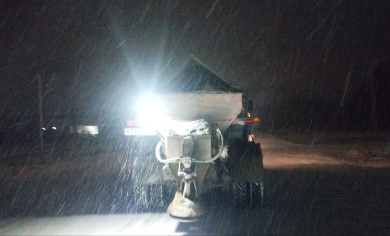 Доржники-комммунальщики работают круглосуточно, расчищая участки от снега и обрабатывая их противогололедными материалами.