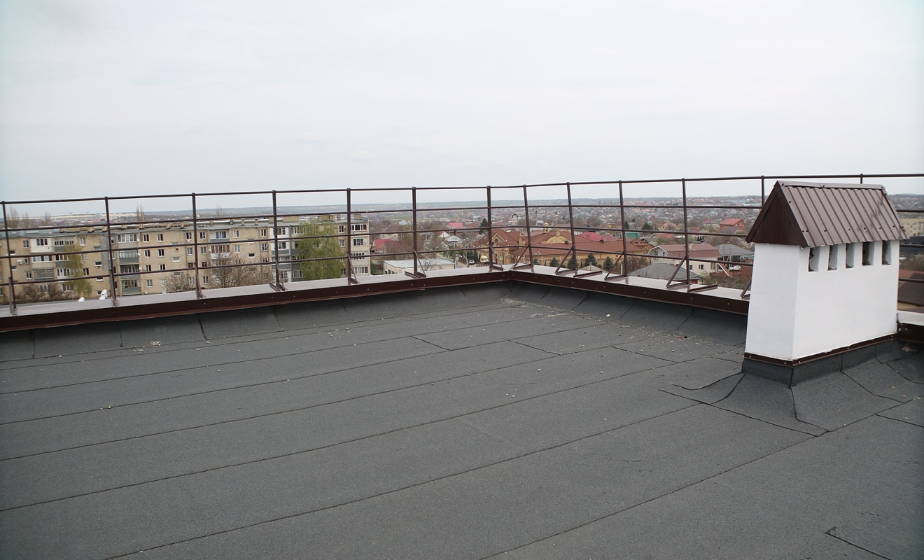На объекте демонтировали изношенное покрытие, выполнили новую стяжку, подготовили основание грунтовкой и смонтировали трёхслойный кровельный пирог из современных наплавляемых материалов, устойчивых к осадкам и резким перепадам температур. Особое внимание уделили примыканиям – именно эти зоны чаще всего становятся источником протечек. Также восстановили вентиляционные каналы, установили ограждение и новую водосточную систему.