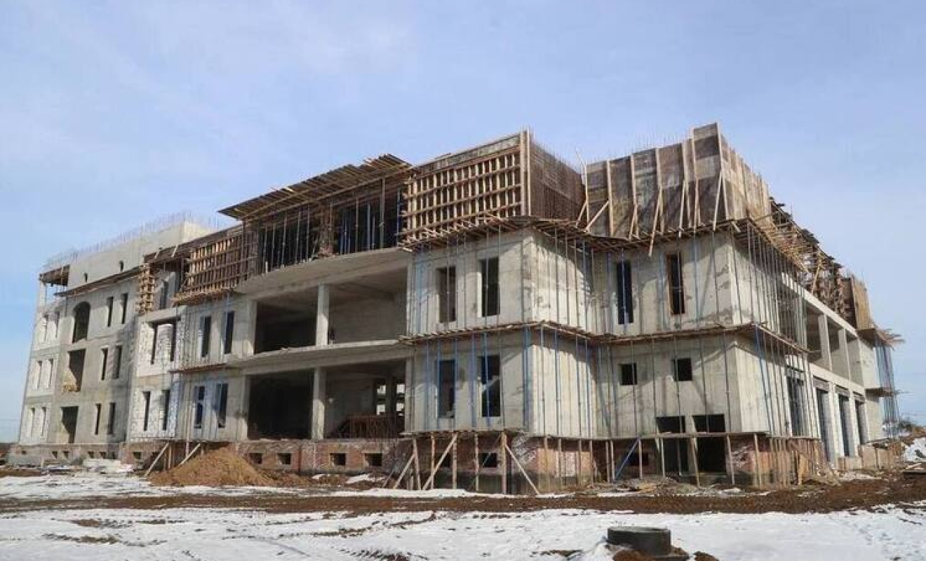 Сейчас готовность объекта составляет 50%. Продолжается возведение стен и перегородок верхних этажей, формирование конструкции концертного зала, рассчитанного на 800 слушателей, а также монтаж систем электроснабжения и отопления.