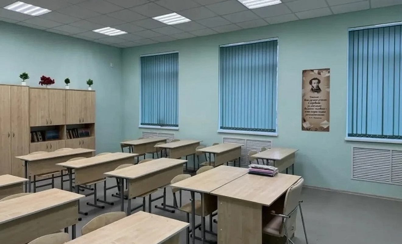 В здании обновлены внутренние помещения, кровля, фасад и благоустраивают школьный двор.