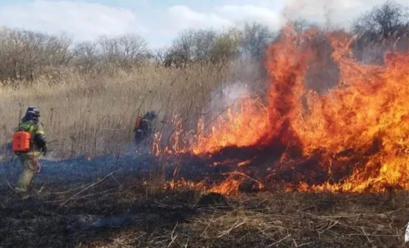Существовала угроза распространения огня с камышей и сухой растительности, загоревшихся на площади в пять гектаров, на жилые строения.