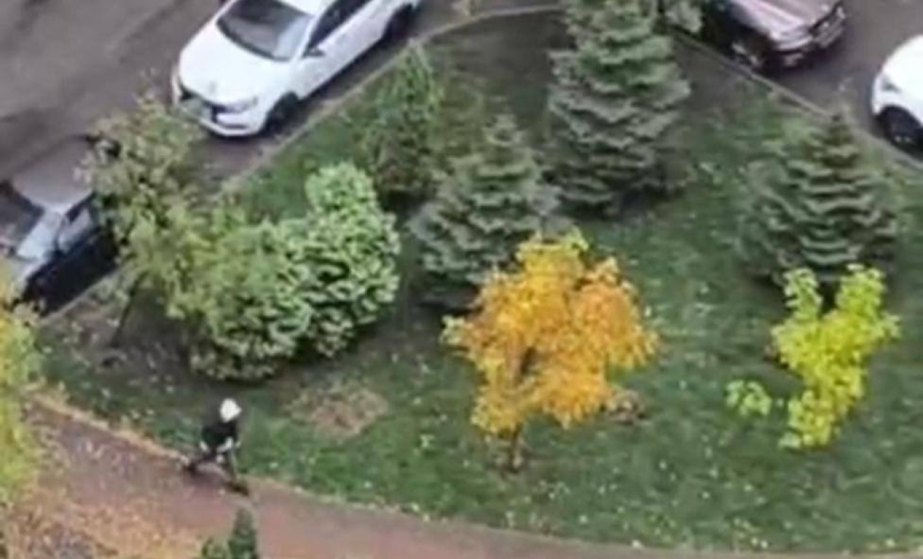 Утром 14 октября местные жители сняли видео — на нём молодой человек, судя по всему, в неадекватном состоянии разгуливает по двору многоэтажки с ножом в руках.