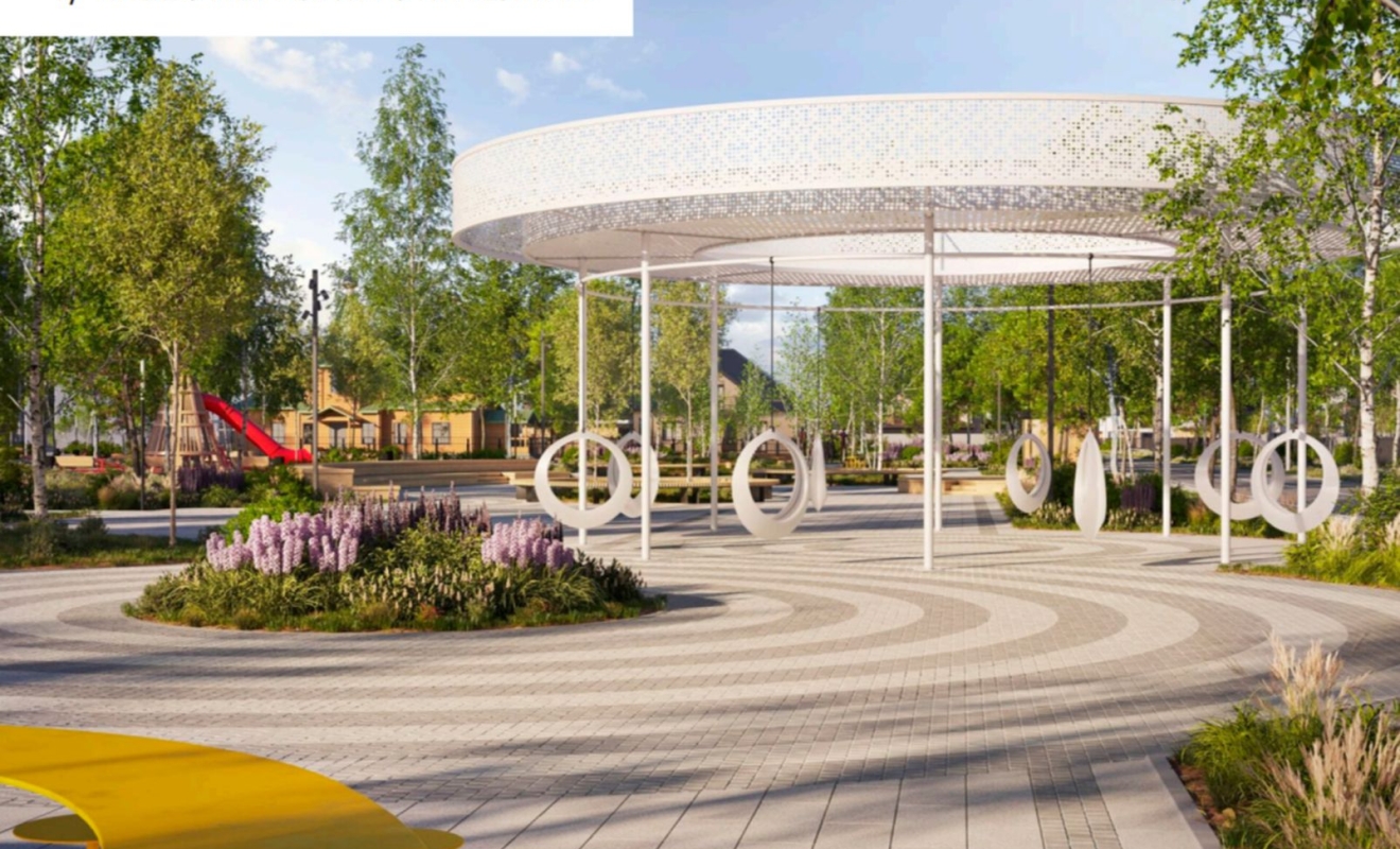 Подрядчик в сквере должен озеленить зону отдыха, уложить тротуарную плитку, сделать сцену и амфитеатр, установить навес с качелями, беседки, скамьи и детскую площадку.